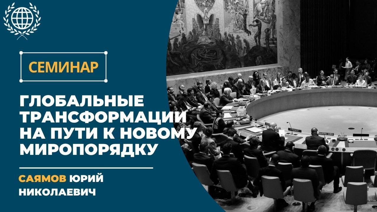 26 ноября 2025 г. в рамках ежемесячного семинара «Актуальные проблемы глобалистики» доктор политических наук, заведующий кафедрой ЮНЕСКО по изучению глобальных проблем ФГП МГУ Саямов Ю.Н. презентовал свой доклад на тему «Глобальные трансформации на пути к новому миропорядку».